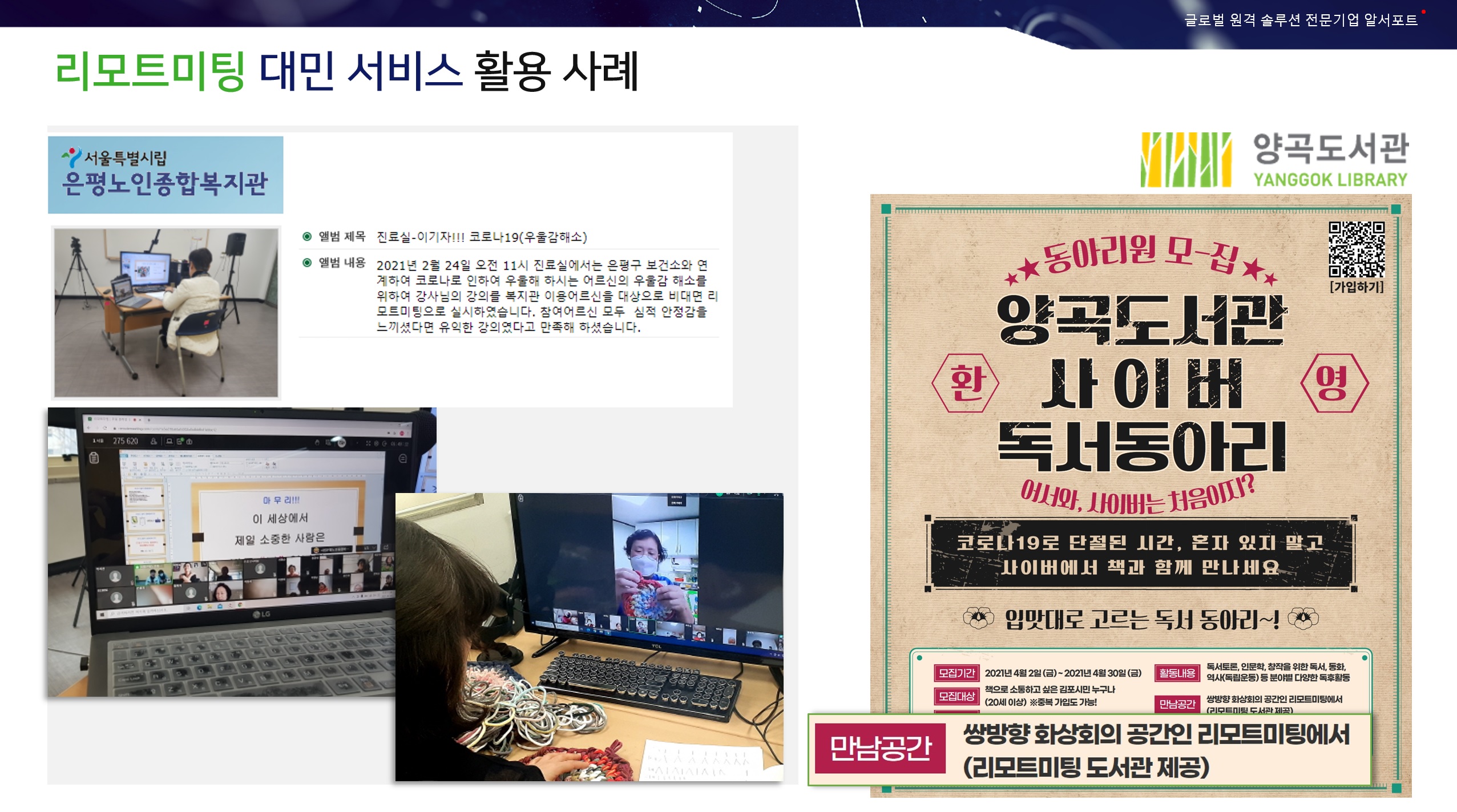 이미 많은 지자체에서 ‘리모트미팅’을 비대면 대민 서비스에 활용하고 있다는 사실에 큰 관심을 받았습니다.