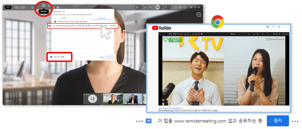 Point : 발표자 PC에서 재생되는 동영상 등의 소리까지 생생하게 공유하고 싶다면 화면 공유 시 ‘오디오 공유’ 체크는 꼭!