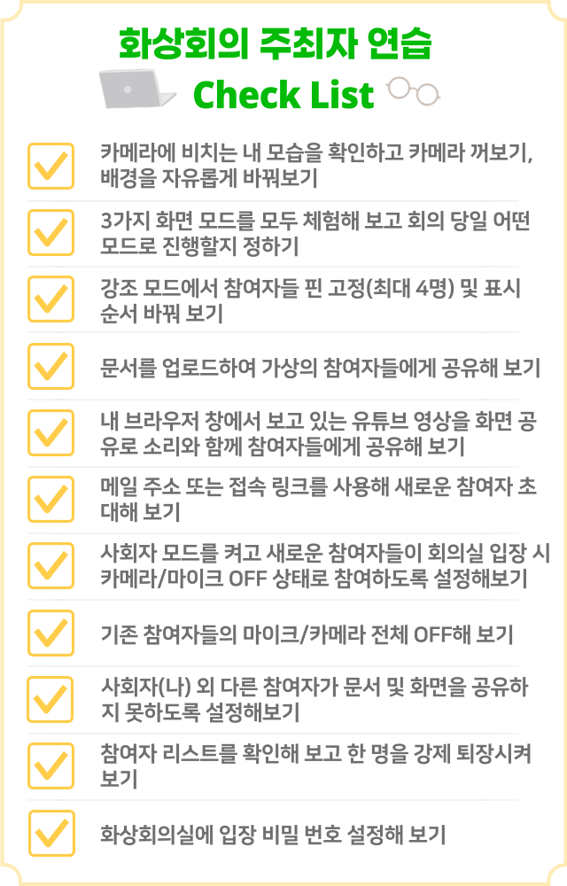 화상회의 주최자의 연습 체크 리스트!