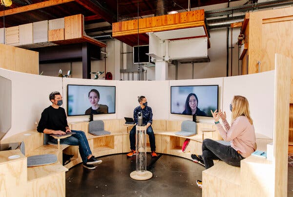 구글이 하이브리드 근무 맞춤 오피스 공간 조성에 힘쓰고 있다. 팀팟(Team Pods)이라는 개조형 사무실(공간)에서는 의자와 책상, 화이트보드에 선반까지 모두 바퀴가 달려 있어 흰색 캔버스에 자유롭게 디자인하는 것처럼 다양한 배치로 바로 바꿀 수 있다. 소규모이면서 그날마다 출근하는 인원에 맞춰 개조하면 되는 것이다. 또한 하이브리드 근무로 인해 재택근무자와 사무실 근무자가 혼재된 상황을 고려해 ‘캠프 파이어’라는 새로운 형태의 회의실도 만들었다. 여기서는 비대면 회의 참석자가 오프라인 회의실의 각 자리에 배치된 모니터에 얼굴이 크게 비춰져 마치 현장에서 함께 회의를 하는 것처럼 느끼게 해준다.