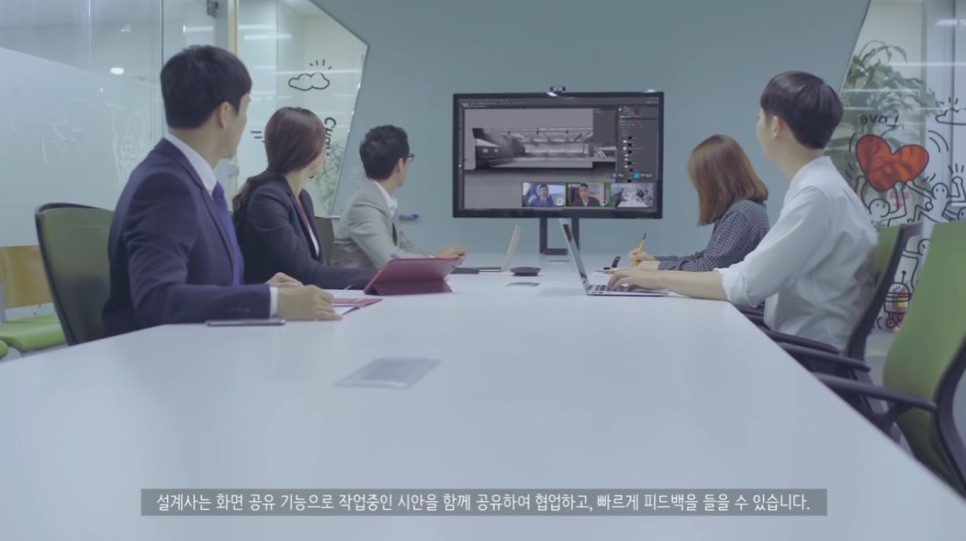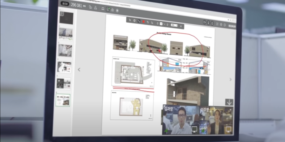 대부분 회의실에 모여 대형 스크린이나 빔프로젝터를 통해 같은 화면을 응시하죠. 많은 인원이 모여있는 회의실에서는 모두 자기 앞 노트북의 화면을 응시할 뿐🤐 발표되고 있는 화면에 관심을 보이지 않는 경우가 많습니다. 이때 화상회의 솔루션의 화면공유 기능을 활용하면 발표자는 파일과 화면을 공유하여 펜/그리기 기능 또는 양방향 화면 그리기/제어 기능을 통해 직접 파일에 추가 내용을 강조할 수도 있고 바로 옆에서 설명하듯이 이해도를 높일 수 있어 집중 효과가 있습니다.