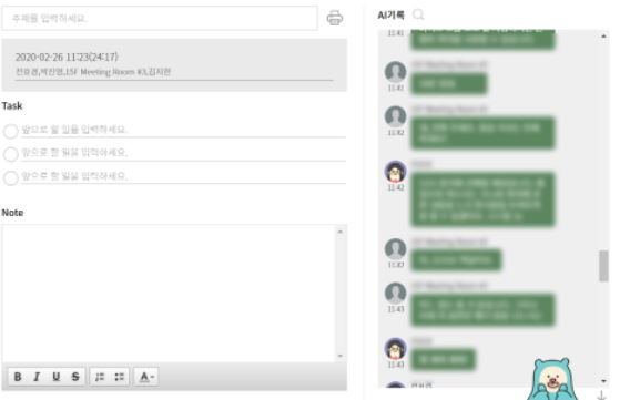 원래 회의를 하게 되면 막내가 내용을 받아 적기 바빴죠. 중간에 잠시 딴 생각이라도 하게 되면 내용을 놓칠 수 있어요.(또르르..😥) 또한 가끔은 회의록 작성자를 정하지 않아서 아무도 적지 않았던 경험, 많이들 있으시죠? 재택근무를 하면서 화상회의를 주로 하다 보니 화면 녹화, 녹음 기능이 있는 경우 나중에라도 회의록을 작성하기 편리하고 회의 때 나눴던 이야기가 기록이 되니 언제든 재확인할 수 있어서 좋았습니다. 저희 제품인 리모트 미팅은 AI 기록 기능이 있는데요 AI가 화자의 음성을 텍스트로 자동 변환하여 음성인식 기반의 AI 대화록이 제공되어서 회의록을 완성하는데 큰 도움이 되었습니다. 놓친 부분도 빠짐없이 기록!
