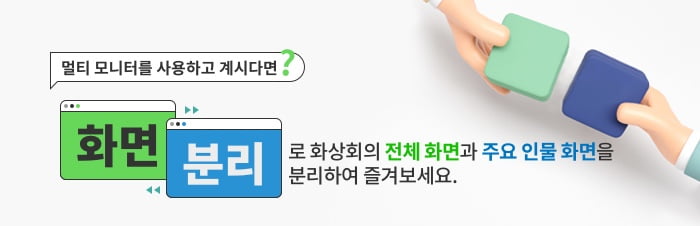 한 모니터에는 화상회의 전체 화면을 띄우고,