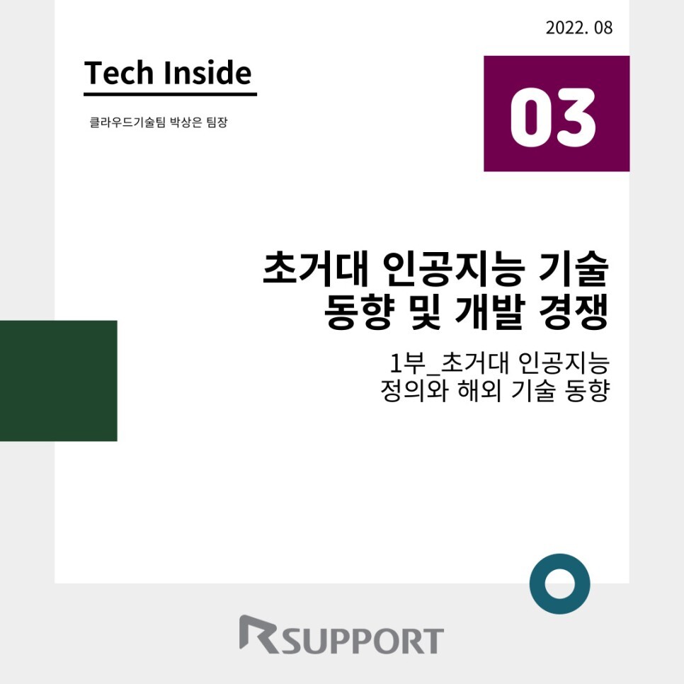 | [알서포트 Tech Inside4호] “초거대 인공지능 기술 동향 및 개발 경쟁" 2부 (0) | 2022.08.26 |