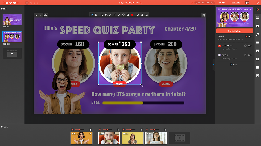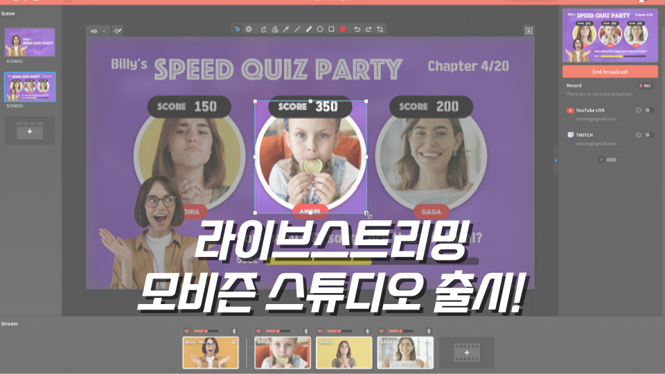 모비즌 스튜디오는 영상 편집 기술이나 경험이 없는 초보자도 무료로 제공되는 디자인 템플릿, 배경음악, 녹화, 라이브 채팅, 스트림 등을 통해 손쉽게 개인방송을 제작할 수 있다. 고가의 방송용 장비나 프로그램을 구입하지 않아도 PC와 스마트폰만으로 다양한 화면을 제작하고 유튜브나 트위치, 기타 송출 시스템에 연결해 라이브 방송을 송출할 수 있다. 쉽게 말해 비용은 물론, 방송 기술이나 인력 부담이 없는 개인방송국을 갖게 되는 셈이다.