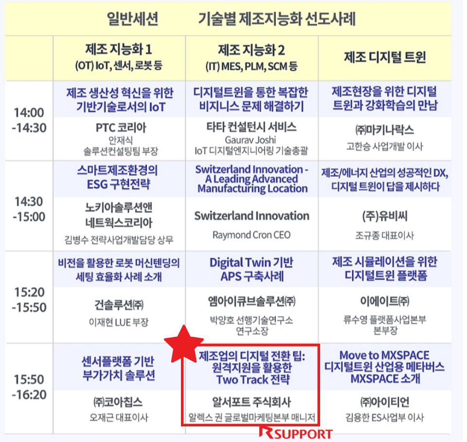 스마트공장과 자동화산업 분야의 최신 기술을 만나볼 수 있는 2023 스마트공장·자동화산업전 ‘제8회 스마트공장엑스포’에 알서포트가 참가합니다.🎉 이번 ‘스마트공장엑스포’에서는