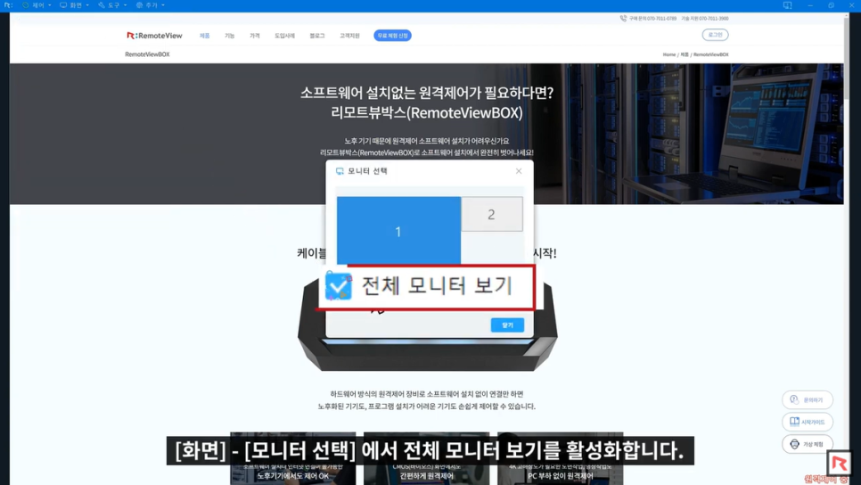 원격지 PC가 여러 대의 멀티 모니터로 연결되었다면,