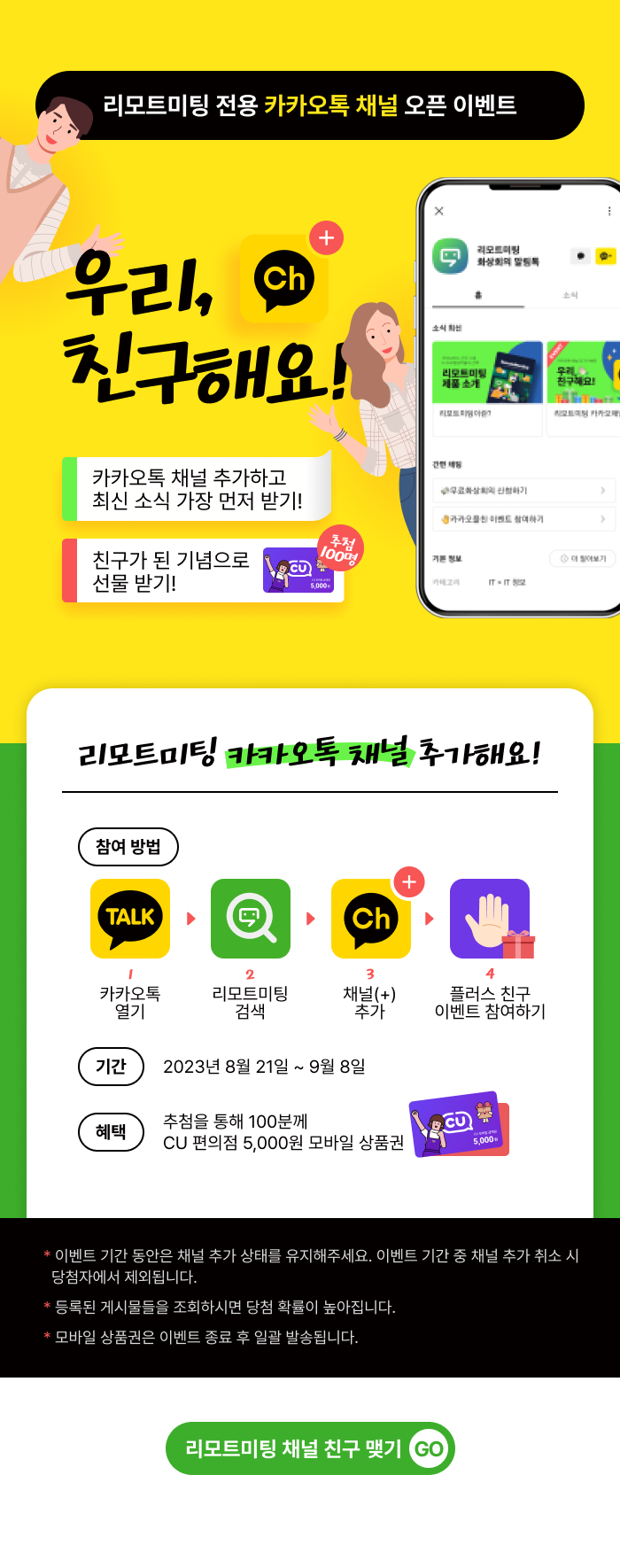 '리모트미팅 전용 카카오톡 채널'을 오픈하게 되었습니다!🙌