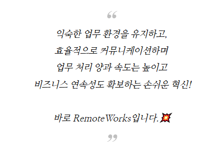기업 혁신/ 업무의 생산성을 높이기 위해서는 익숙한 업무 방식과 환경 유지가 중요합니다. 번거로운 변화가 필요 없는 업무 환경에서 상시적인 커뮤니케이션, 즉각적인 업무 처리를 할 수 있어야 효율적인 비즈니스 운영이 가능합니다.