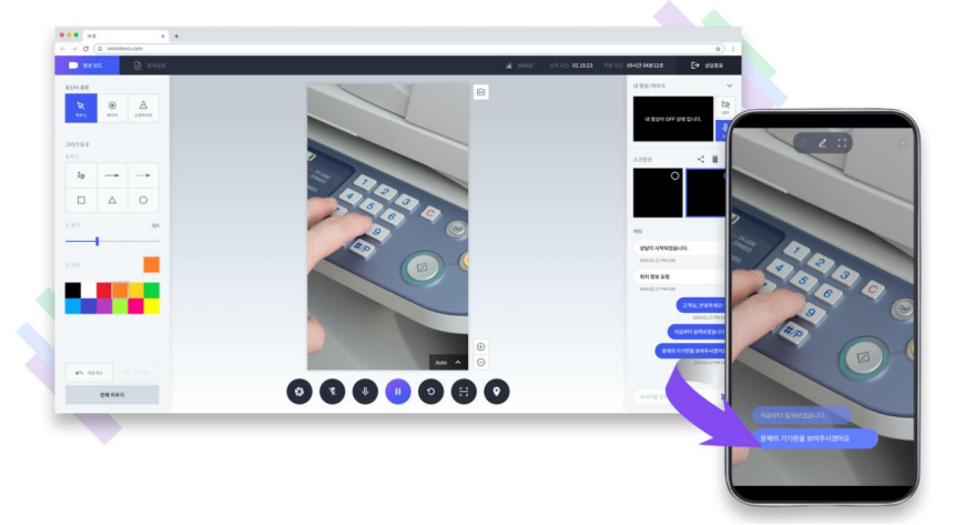 영상 원격지원은 카메라로 현장 영상을 공유하여 같이 보면서 문제를 진단하고 해결 방법을 안내하는 원격지원 방법입니다.