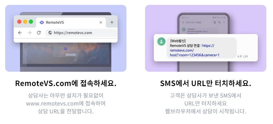 별도 앱이나 프로그램을 설치할 필요 없이 상담원이 보낸 문자 메시지의 인터넷 주소 (url)만 클릭하면 즉시 시작하고, 이미지 · 화면 공유와 영상 녹화 및 이력 관리 기능 등 비대면 영상 상담에 최적화된 기능을 활용할 수 있어 업무 생산성 향상에도 도움이 되고 있습니다.