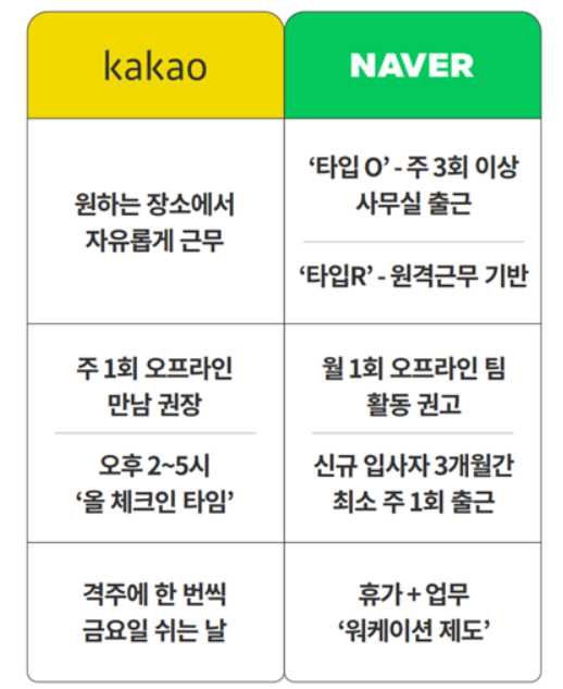 실 예로 2022년 7월 4일부터 국내 IT 기업 네이버와 카카오는 본격 재택근무 체제로 전환하였어요. 이는 코로나로 인해 임시 조치로 시행되었던 재택근무가 공식 제도로 자리 잡은 첫 사례이며, 향후 다른 IT업계의 근무 형태 에도 큰 영향을 미칠 것으로 보입니다. 이들 기업은 "사람들이 집에서 근무할 때 기대했던 것보다 훨씬 더 생산성이 높았다" 며 원격 근무를 도입해도 생산성이 크게 저하되지 않는다고 판단하였습니다. 또한 지난해 고용노동부가 재택근무에 대해 조사한 바에 따르면 코로나19이후에도 계속 시행하겠다는 기업이 많아 상시적 근무 방식으로 정착할 가능성을 시사했습니다. 기업 인사담당자 및 근로자 모두 업무 효율이 높아졌다는 응답이 많아 재택근무로 인한 생산성 우려는 크지 않은 것으로 나타났습니다.