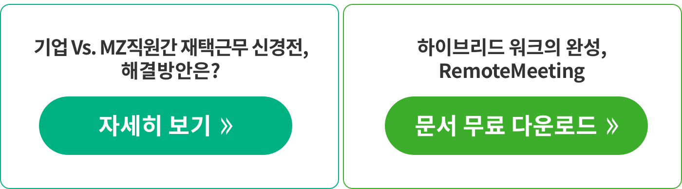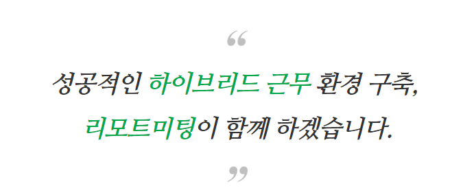 이러한 것들을 처음부터 고민하고 만든 화상회의, 리모트미팅을 도입한다면 하이브리드 근무에 시행 착오 없이 성큼 다가설 수 있을 겁니다. 소통은 더 부담 없이, 회의는 더 편리하게, 협업은 더 강력하게 할 수 있으니까요.😎