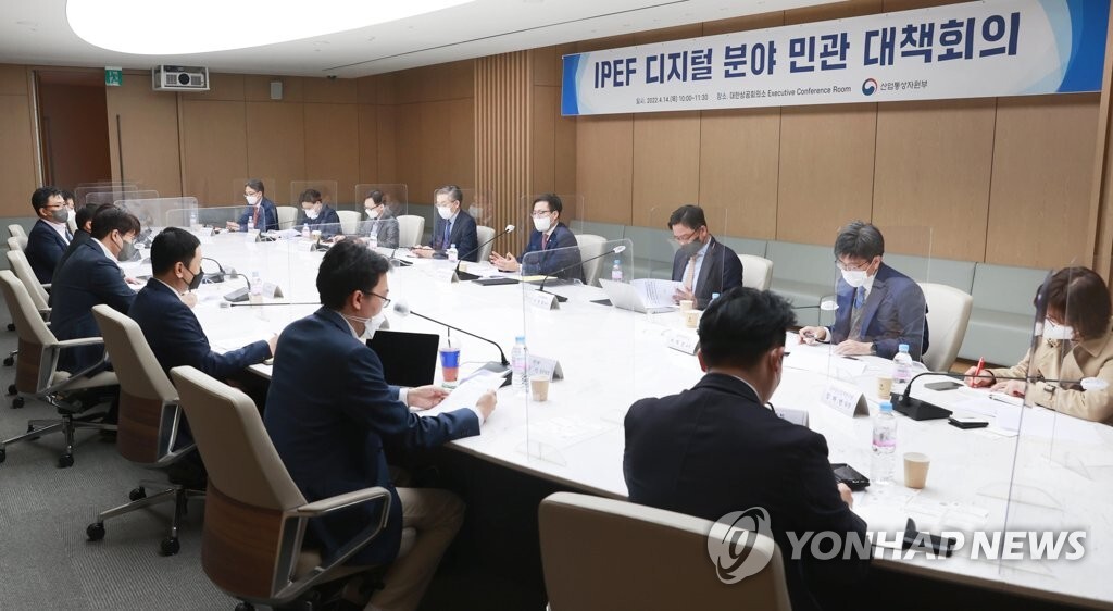 산업통상자원부 주재로 진행된 이날 회의에서는 미국이 주도하는 '인도태평양 프레임워크(IPEF)' 참여를 검토하면서 세계적인 수준의 대한민국 IT 기업들이 인도태평양 디지털 시장을 선점하기 위해 대표적인 IT기업들의 의견을 듣는 자리였는데요,