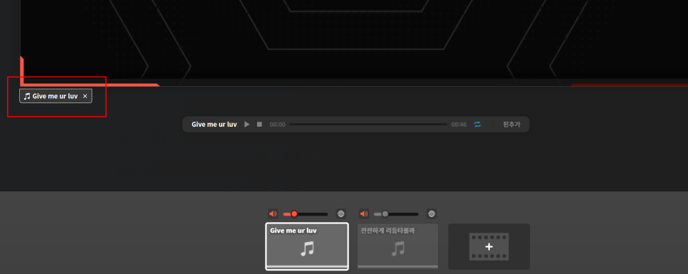 우선 “Give me ur luv”라는 곡을 씬에서 사용하려고 해요.