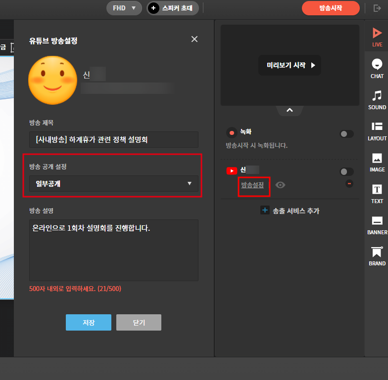다른 계정이나 서비스로 동시에 송출을 하고 싶을 경우