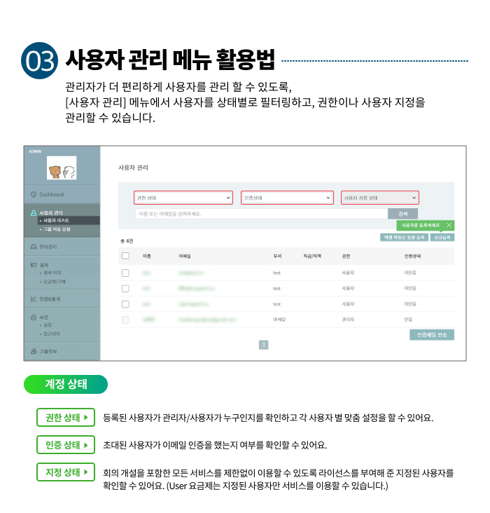 관리자 계정으로 로그인 후 [관리자 페이지]에서 한번 확인해 보세요