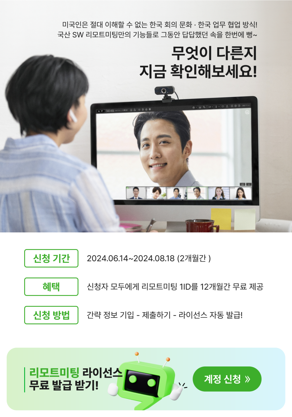 이번 기회에 무료로 리모트미팅을 이용할 수 있는 기회를 잡으세요!