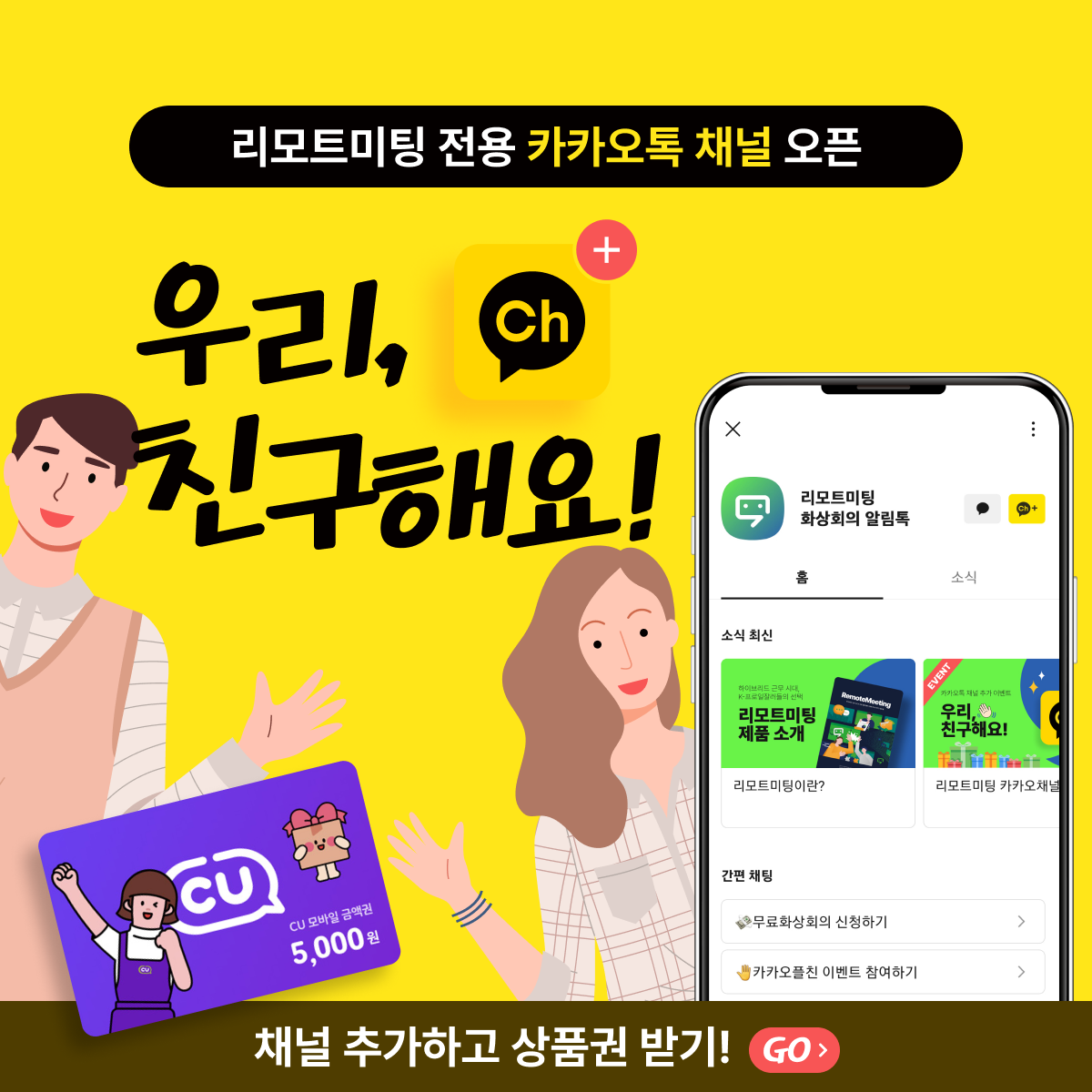 카카오톡에서 "리모트미팅" 을 검색해 채널을 추가해 주세요!