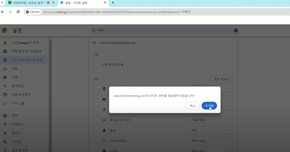 재설정 후 다시 리모 미팅으로 돌아가