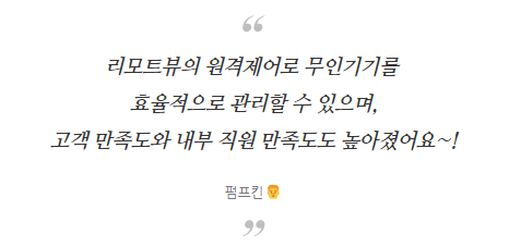 저희와 같은 무인 시설을 운영하는 기업에게는 믿을 수 있는 원격제어 서비스인 리모트뷰를 강력히 추천드립니다!👍