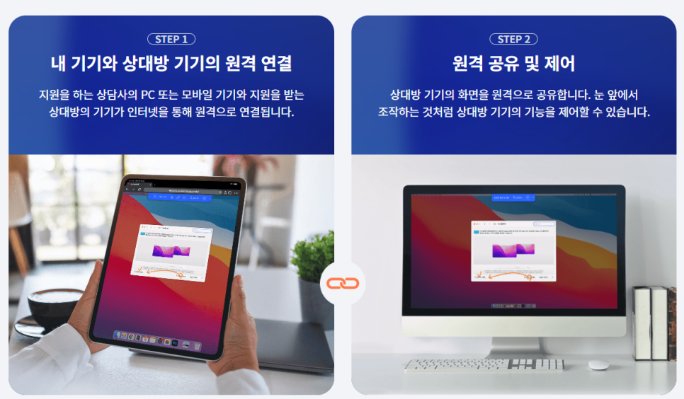 리모트콜 원격지원이란, 상대방의 기기에 원격으로 연결하여 기기의 화면을 보면서 필요한 지원을 해주는 것을 말합니다.