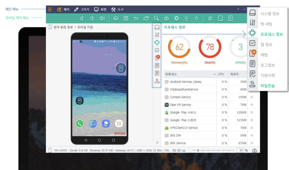 리모트콜 모바일 지원은 상대방의 모바일 기기에 원격접속하여