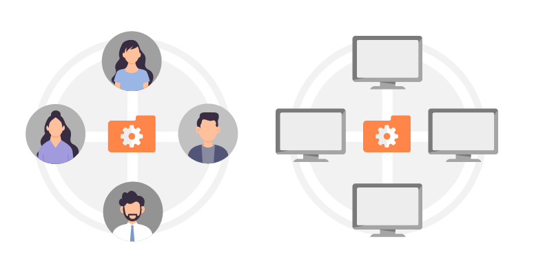 그룹관리 기능은 PC 또는 사용자들을 그룹(폴더)으로 묶어 지정된 사용자만 접근/ 제어할 수 있도록 설정하거나 그룹의 관리자 권한을 지정할 수있습니다.