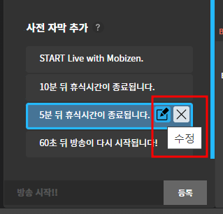 등록한 자막을 수정하실 수도 있고 삭제하실 수도 있어요!