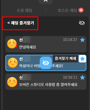 이 버튼이 바로 채팅 즐겨찾기 버튼인데요!