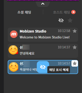 방송 화면에 노출 중인 채팅 표시를 해제하고 싶으시다면
