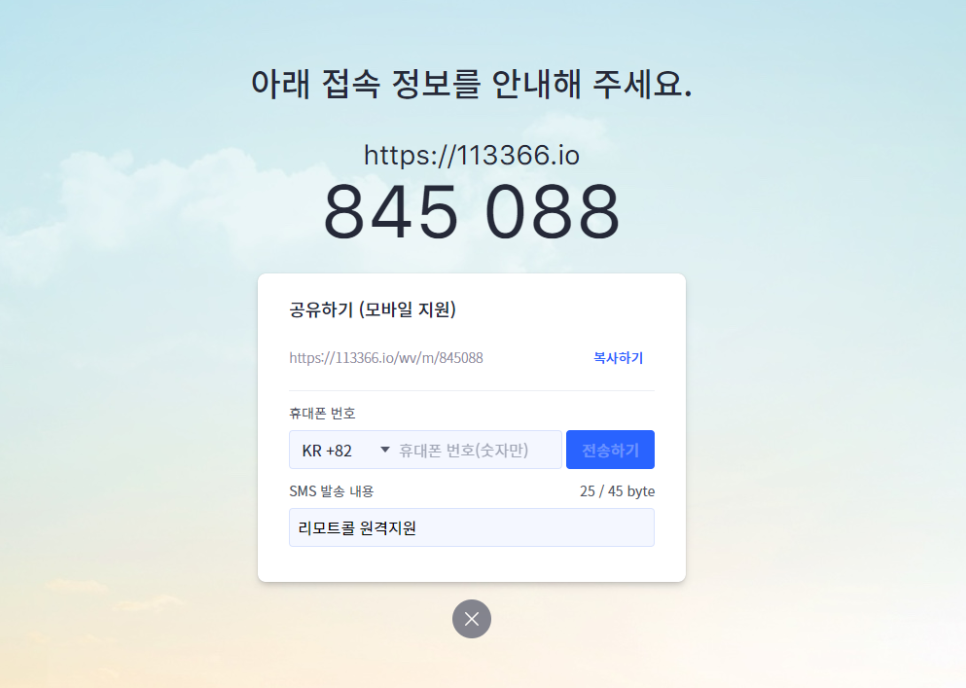 지원받는 상대방이 안내 받은 링크로 접속하면