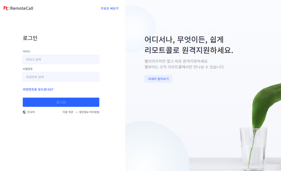 가장 먼저 리모트콜 사이트에 접속해 로그인해 주세요.