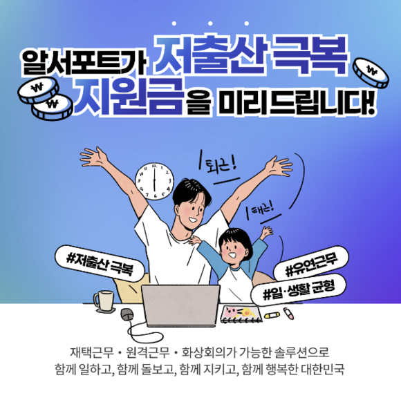 알서포트는 또 이 달 들어 경력이 단절되거나 업무 연속성 저하를 고민하는 직장인과 기업을 위해 재택근무 솔루션 3종을 무료로 지원하는 공익 캠페인 “알서포트가 저출산 대책 지원금을 미리 드립니다!”를 기획해 진행하고 있다.
