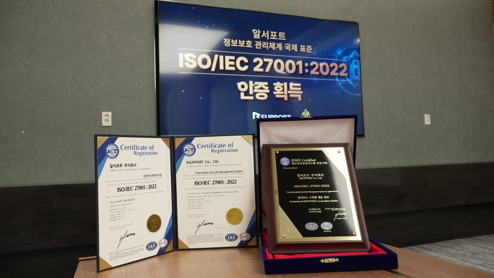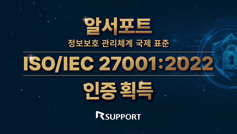 알서포트가 정보보안 국제인증 ISO/IEC 27001:2022를 획득하였습니다.