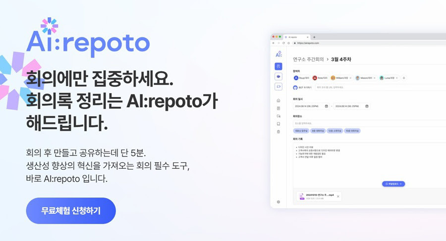 ‘AI리포토’는 온·오프라인 회의 내용을 자동으로 기록하고 정리하여