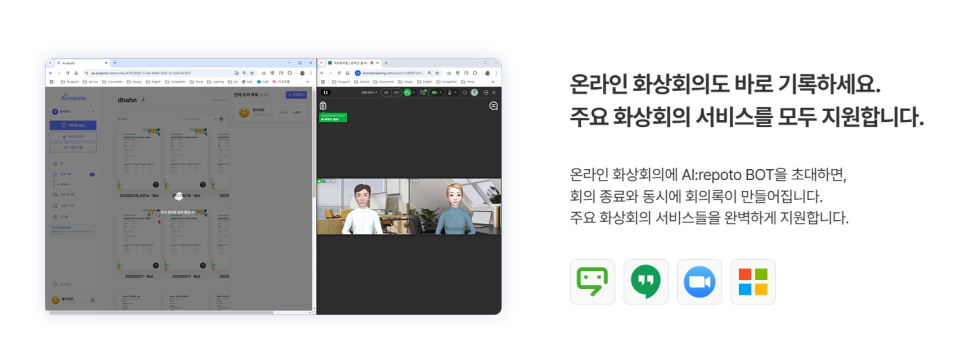 ‘AI리포토’는 온·오프라인 회의 내용을 자동으로 기록하고 정리하여