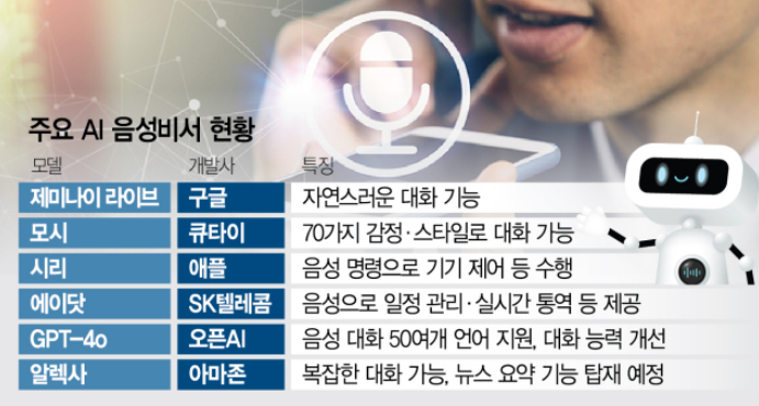 오픈AI는 한국어를 포함한 50개 언어의 사용을 개선한 챗GPT 어드밴스드 보이스 모델을 새롭게 선보였습니다. AI 음성 비서 서비스는 생성형 AI를 활용해 이용자의 명령에 따라 실시간 대화 및 인터넷 검색 등을 수행하는 서비스입니다.