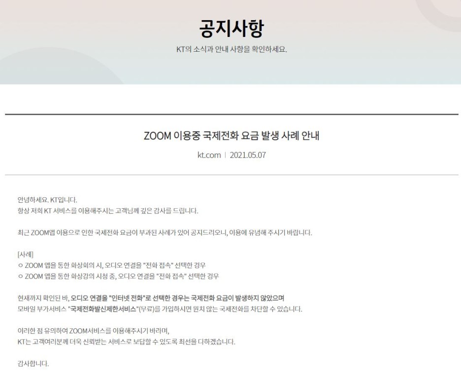 A씨와 같은 피해가 잇따르자 최근 국내 주요 이동통신사들은 홈페이지를 통해 유명 외산 화상회의 서비스 이용 시 해외 통화료가 부과될 수 있다는 안내를 공지했습니다.