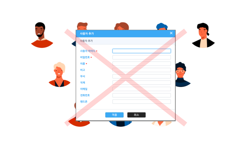 여기서부터 본론! 리모트뷰와 같은 원격제어 솔루션 최초 도입 시, 관리자는 직원들이 각자 원격 접속을 할 수 있는 환경을 만들어 주기 위해 수백 명, 많게는 수천 명 정도 되는 사용자와 접속 PC를 모두 시스템에 등록해야 하는데요. 일일이 하게 되면 굉장히 비효율적입니다.