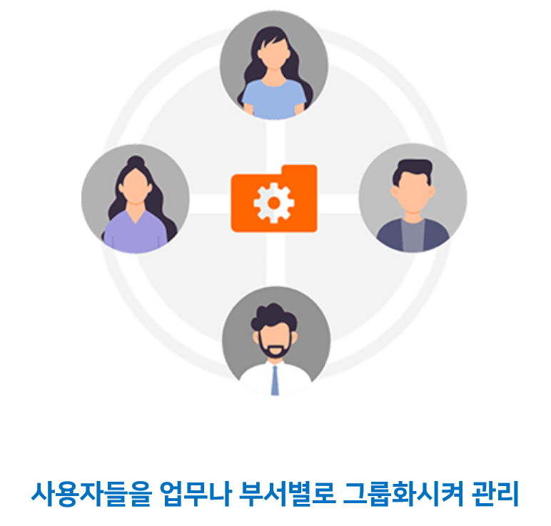 먼저 인사팀 소속 PC, 회계팀 소속 PC... 와 같이 그룹(폴더)을 만들어줍니다. 사용자 등록 시, 매니저로 등록된 직원은 담당 매니저 칸에서 해당 그룹의 매니저로 지정할 수 있습니다.