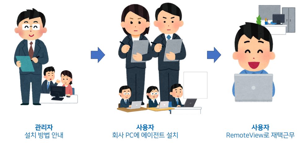 사용자 등록이 완료되면 다음은 사용자들의 PC 등록입니다. 직원들이 각자 집에서 자신의 회사 PC로 접속하기 위해서는 각 사용자(직원)의 회사 PC에 에이전트가 설치되어 있어야 합니다. 관리자가 일일이 설치해 줄 수는 없으니 사용자들이 '알아서' 설치할 수 있도록 관리자가 안내를 잘 해줘야 합니다.