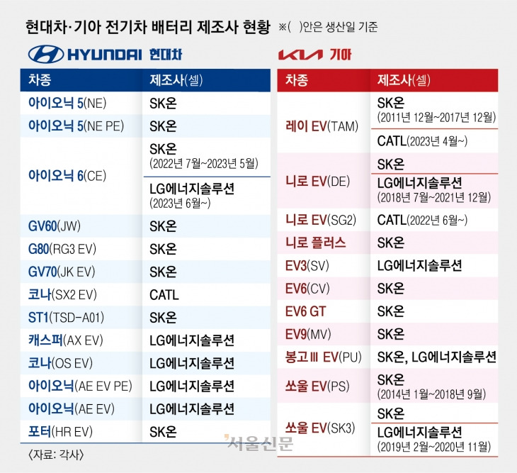 전기차 배터리 제조사 공개,