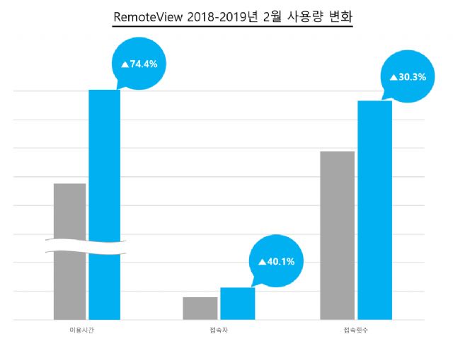 이어 원격제어 시스템인 리모트뷰는 이용시간이 74.4% 증가하고 접속자는 40.1%, 접속횟수는 30.3% 증가했다.