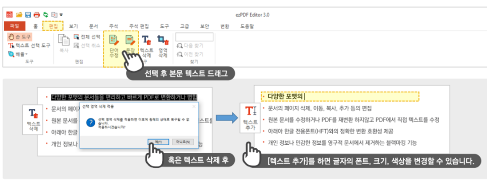 PDF 문서의 글자를 다른 글자로 변경하고 싶을 때,
