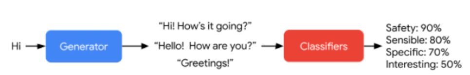 다른 언어 모델과 다른 람다의 가장 큰 차별점 중 하나는 바로 답변 생성 후에 여러 측정방식(Metric)에 대해 아래와 같이 점수를 예측한다는 점입니다.