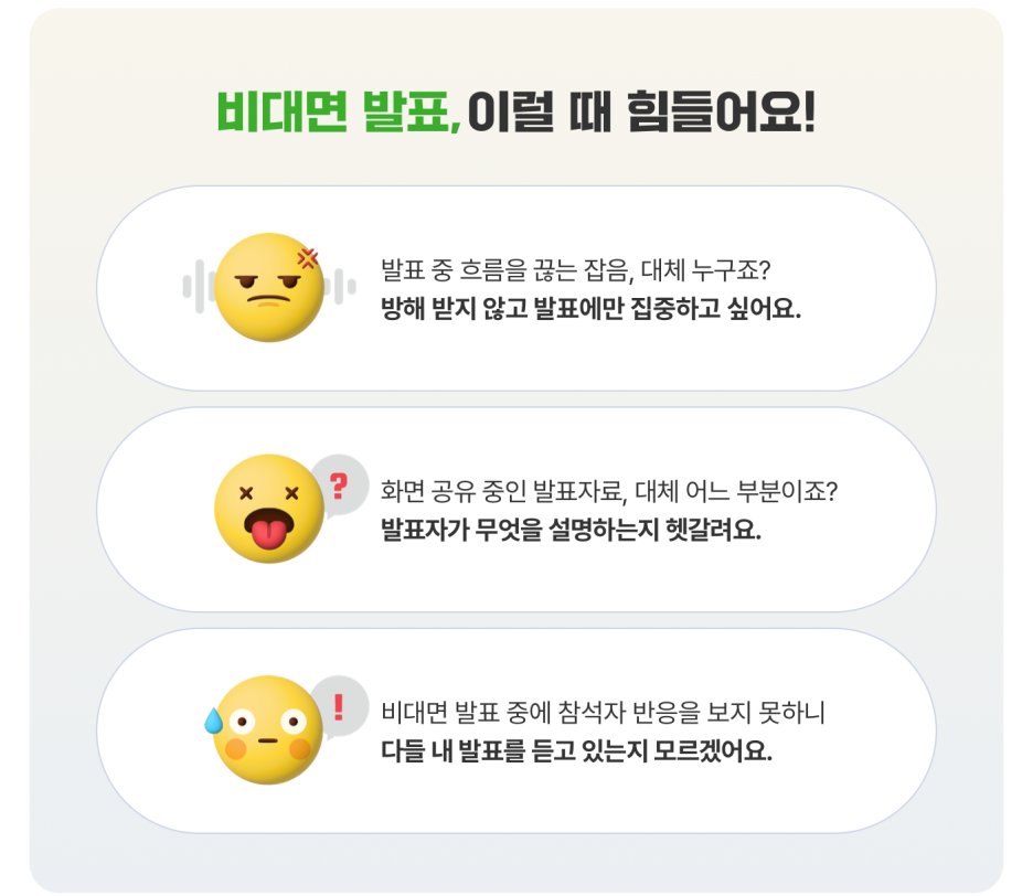 👱♀️"비대면이다 보니 참석자들이 잘 듣고 있는지 반응을 모르겠어요"