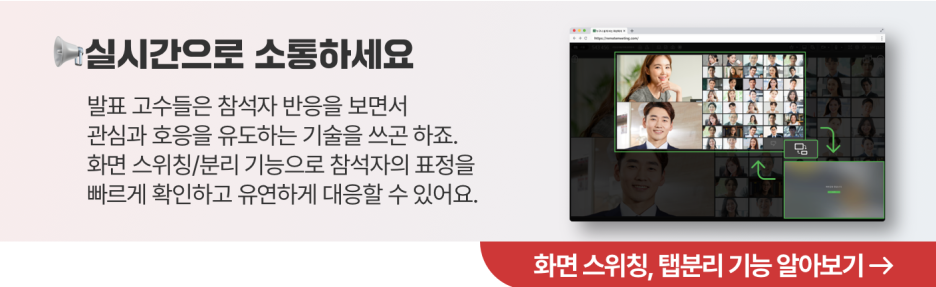 리모트미팅의 '화면 스위칭' 기능으로 발표자는 참여자 전체 모습을