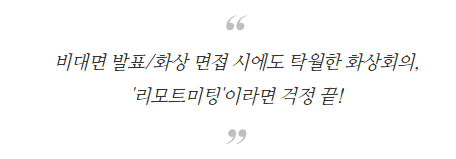 이처럼 화상회의 전문 리모트미팅은 다른 솔루션들과는 다르게