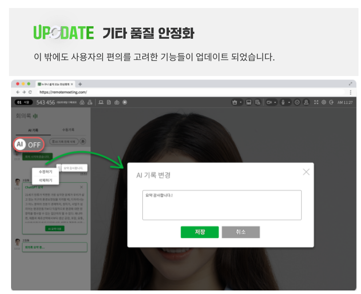 인공지능(AI) 회의록 작성 기능을 제공하고 있습니다.
